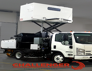 The Challenger sweeper model is a chassis mounted, broom-only, mechanical, high-dump road sweeper. This street sweeper is a reliable machine that sweeps well in every application. It features high fuel efficiency, low initial cost and simplicity of operation.